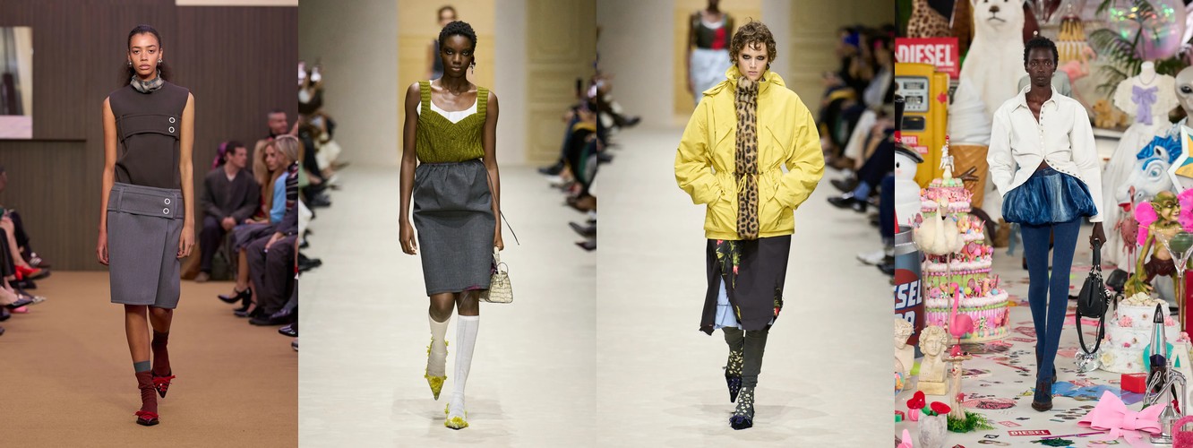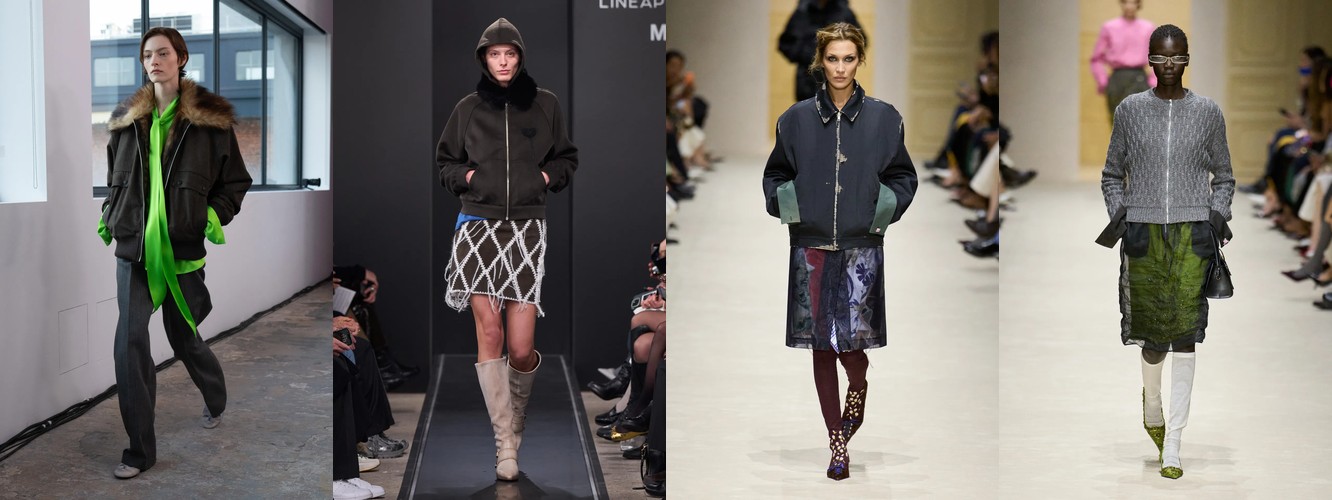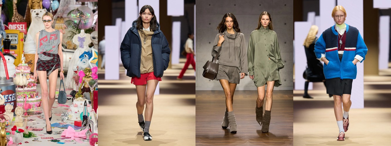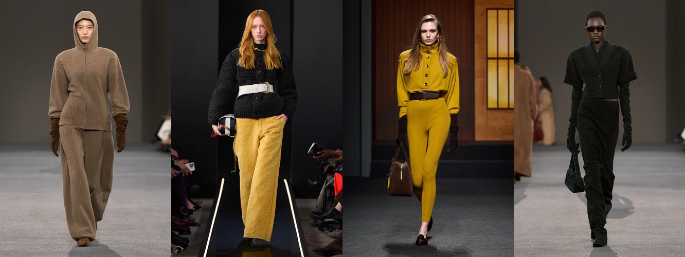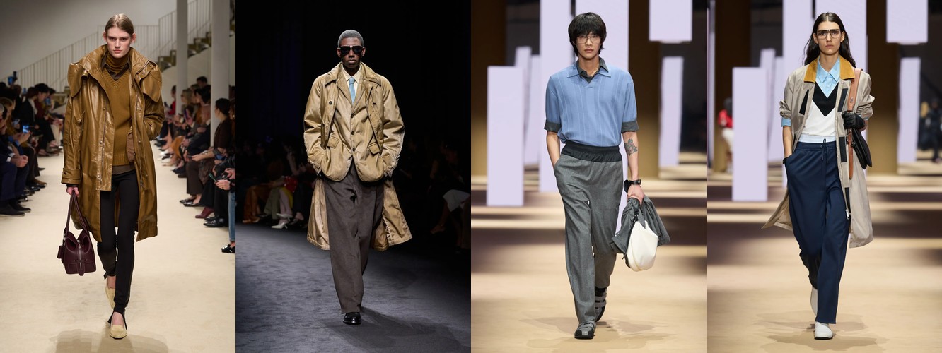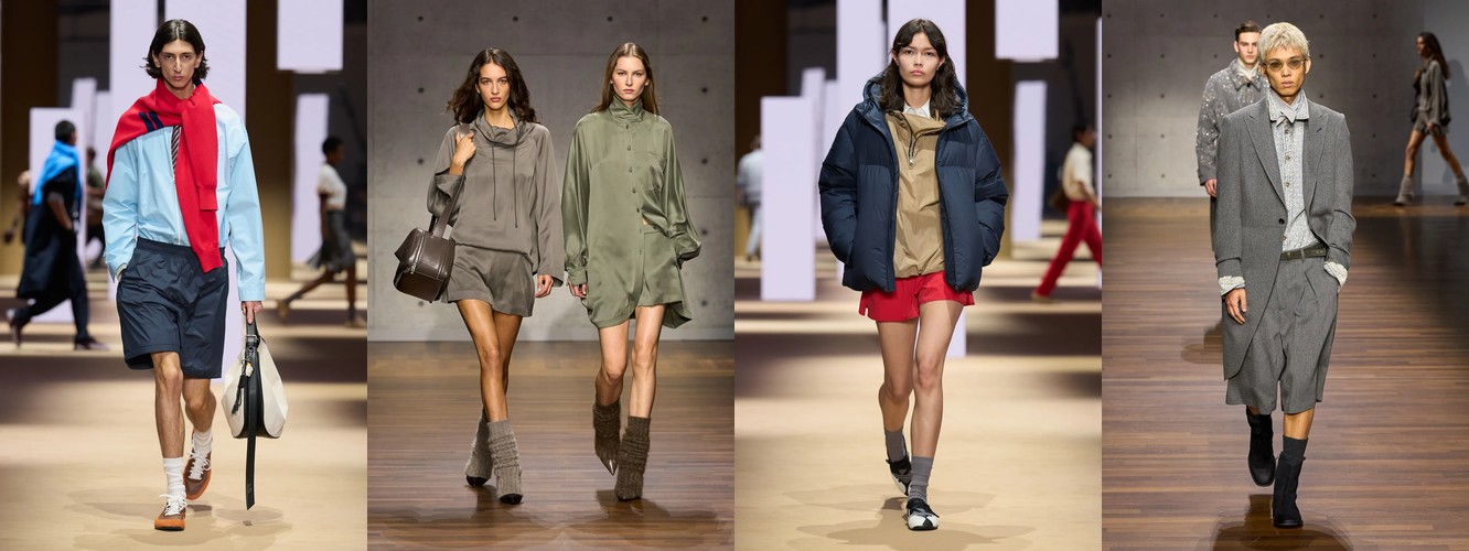 Спортивный код демонстрирует взрывной рост: атрибут «спортивный» — +315,15% (с 0,33% до 1,37%), спортивная куртка — +147,79%, спортивные штаны — +61,03%, джоггеры стабильны. При этом охват «спортивного» вырос с 10% до 22% брендов — речь не об отдельном доме, а о зарождающемся консенсусе. Парижский подиум, традиционно антагонистичный к athleisure, начинает интегрировать спортивный код в систему tailoring, создавая гибридные силуэты. Это прямой отклик на макро-тренд wellness-ориентированного лайфстайла и ответ на успех Miu Miu-подобной инфильтрации спортивного в люксовое.