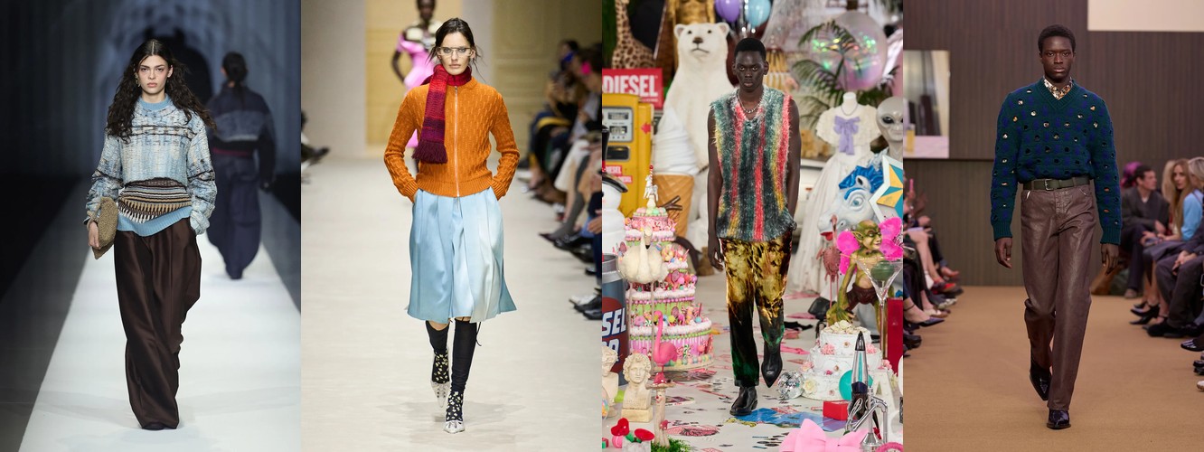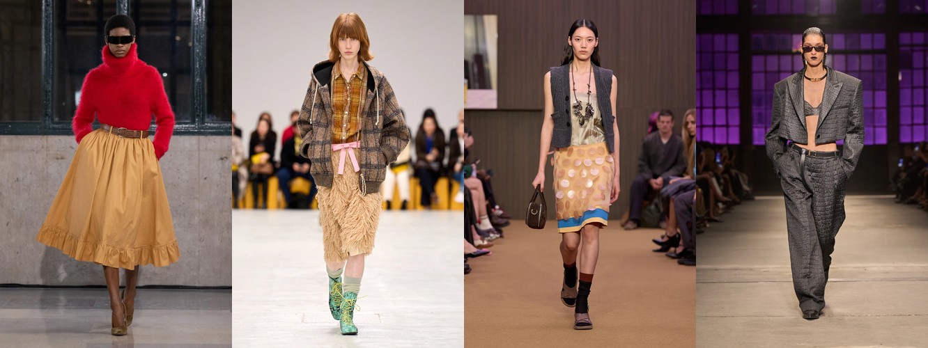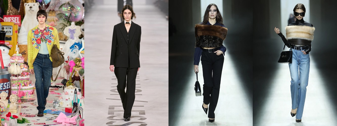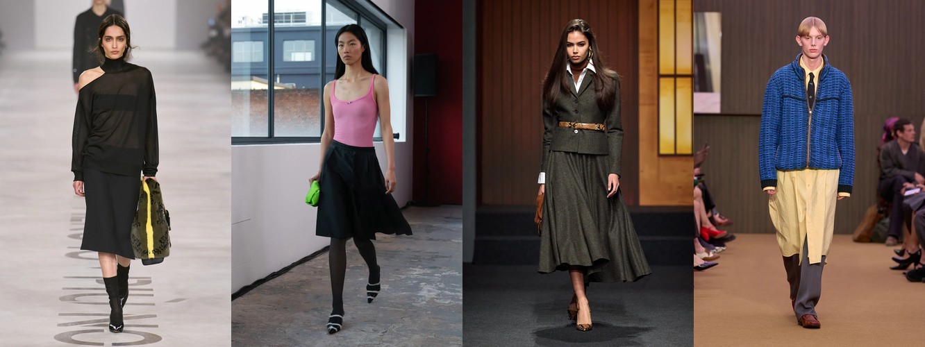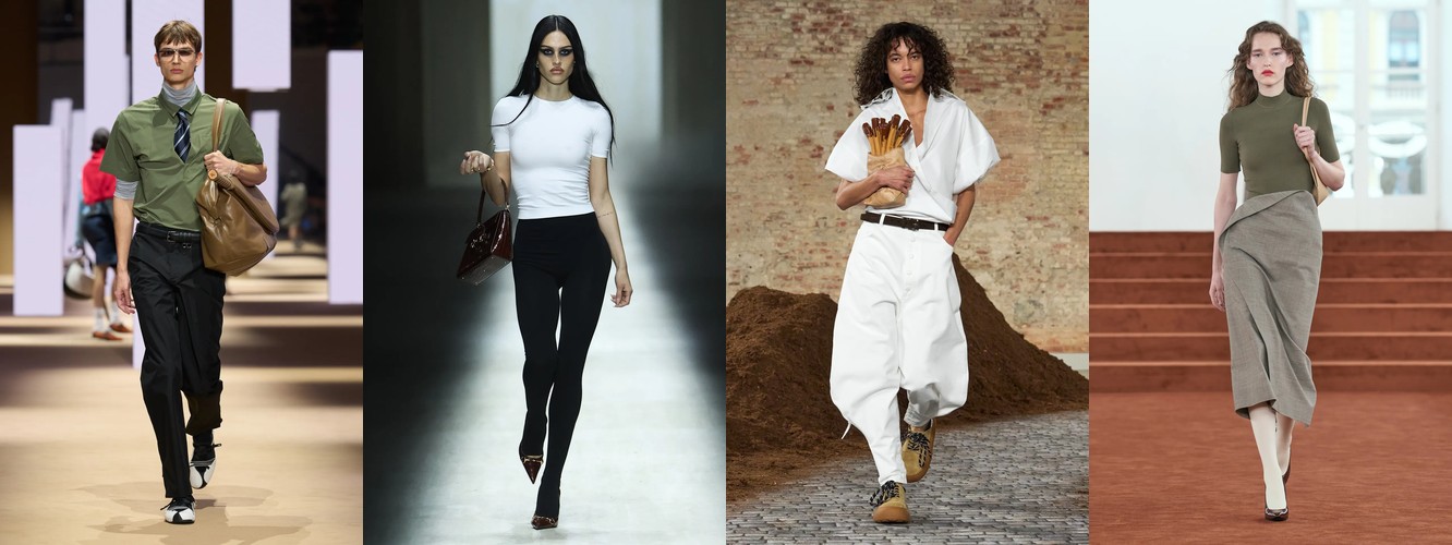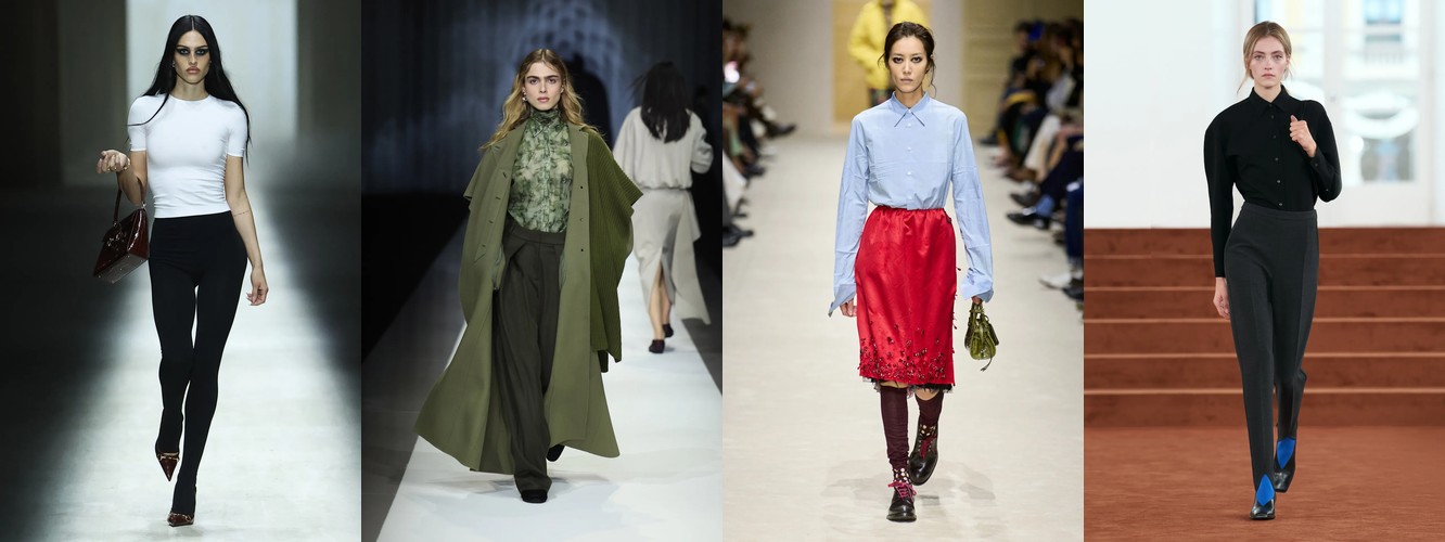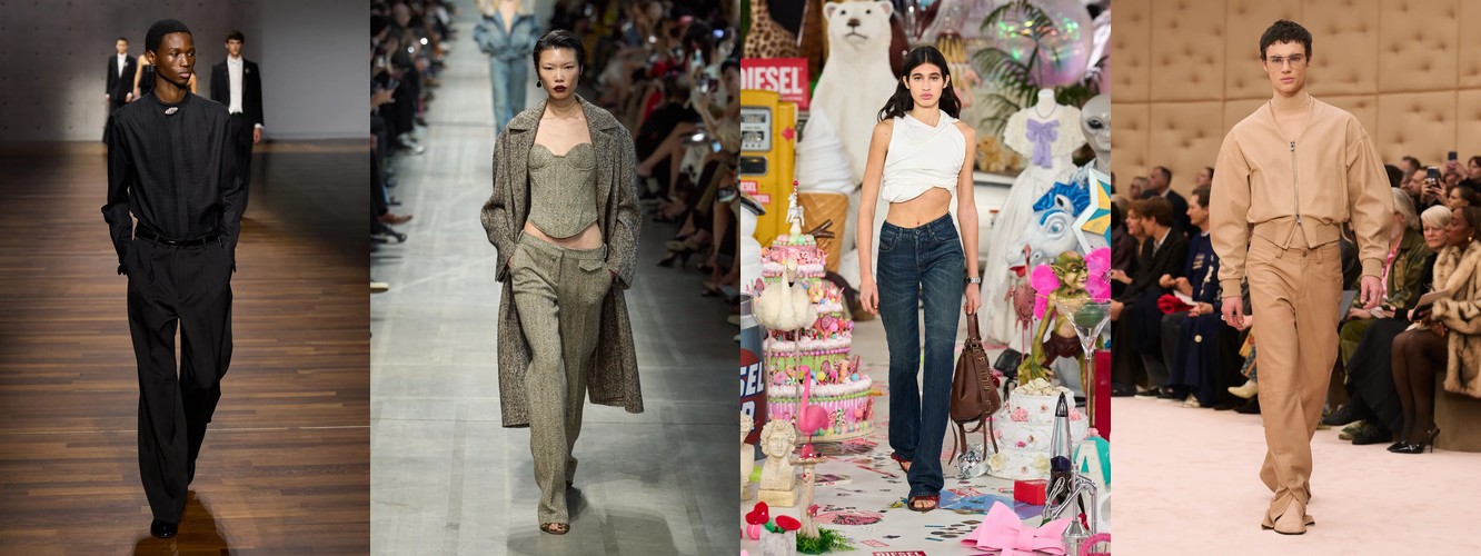Паттерн дифференциации внутри категории говорит о многом. Падают те силуэты, которые несут в себе историческую или субкультурную цитату (палаццо = 70-е, клёш = 70-е, кожаные брюки = рок/панк). Растут силуэты «нулевой степени стиля» — прямые, широкие, костюмные, — то есть формы, лишённые ностальгического послания. Мода отказывается от ретроспекции и производит автономные, самодостаточные пропорции, не привязанные к конкретному десятилетию.