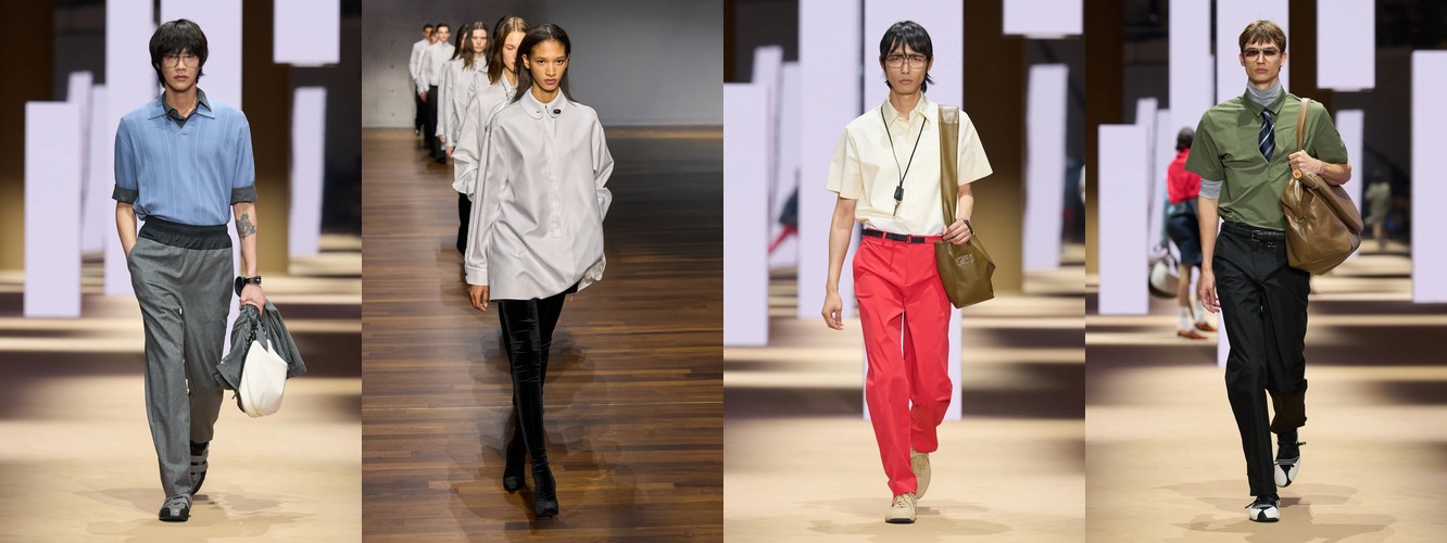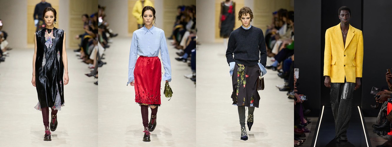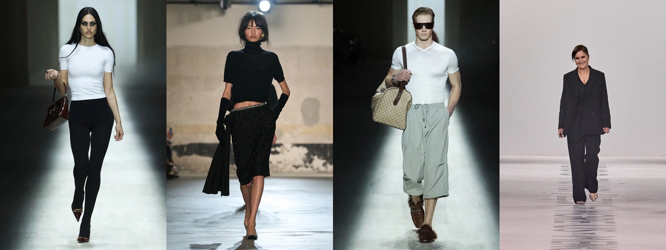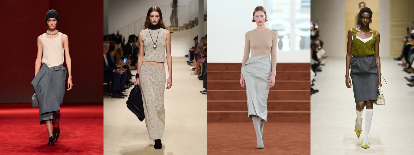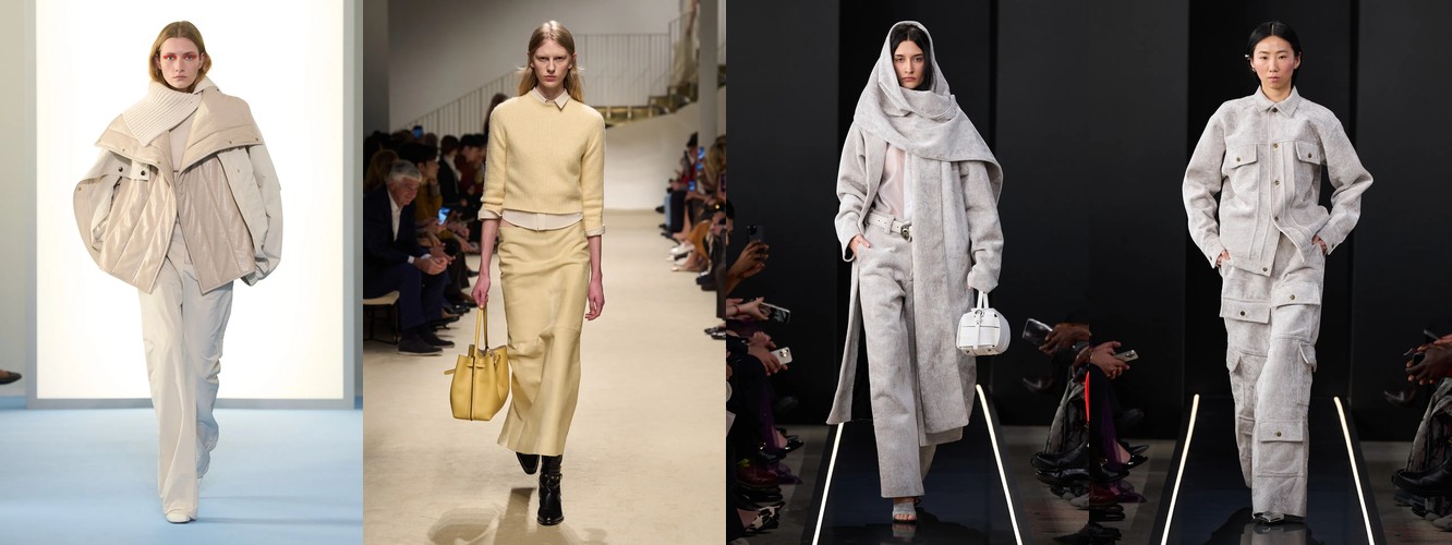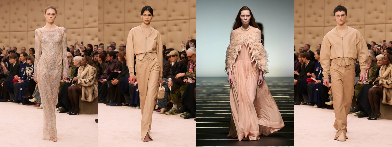 Это не сезонная коррекция; это — отказ от визуального шума как коммуникативной стратегии. Ещё в AW25-26 блеск и фактурное богатство служили инструментами привлечения внимания в перегруженном контентом поле. Сейчас подиум транслирует прямо противоположный посыл: тишина как роскошь, сдержанность как высказывание. Когда бренд убирает пайетки и добавляет костюмную тройку, он перенастраивает свою визуальную коммуникацию с «посмотри на меня» на «я не нуждаюсь в твоём одобрении».