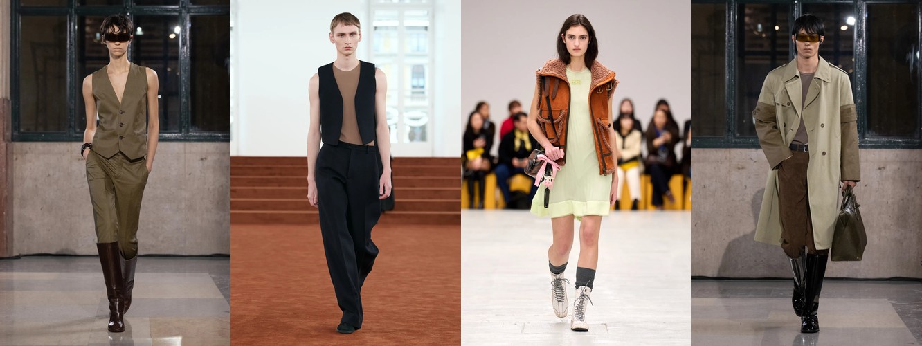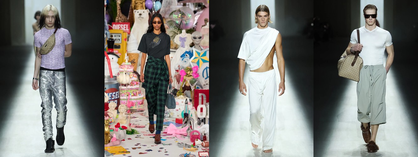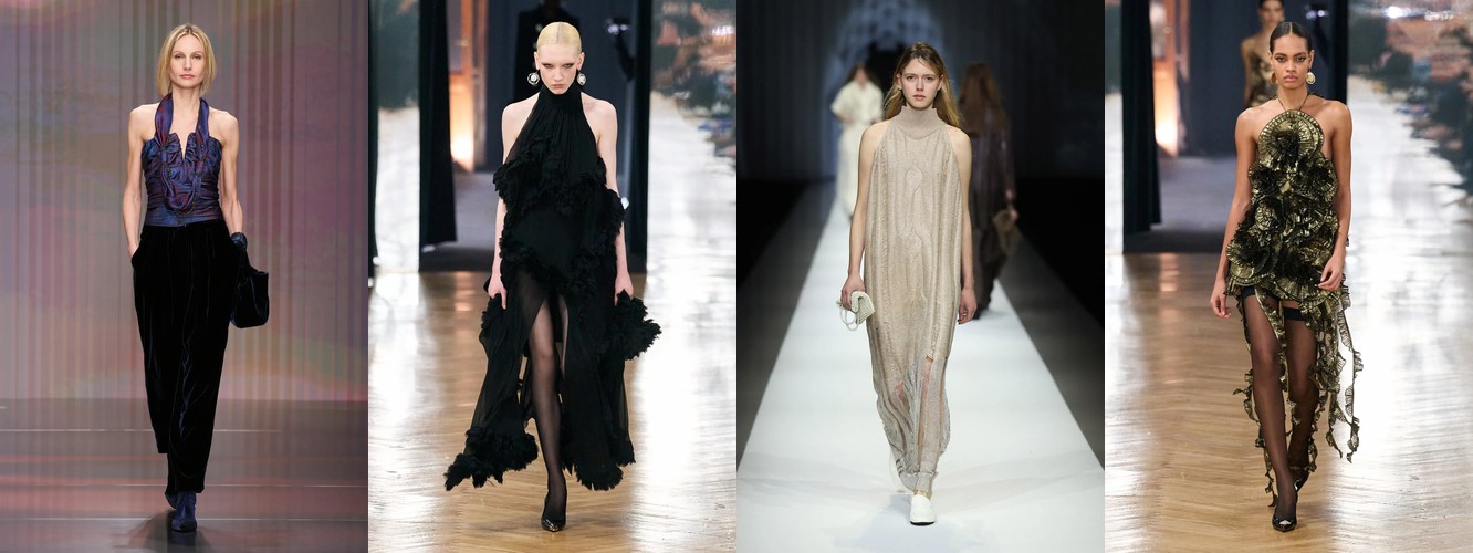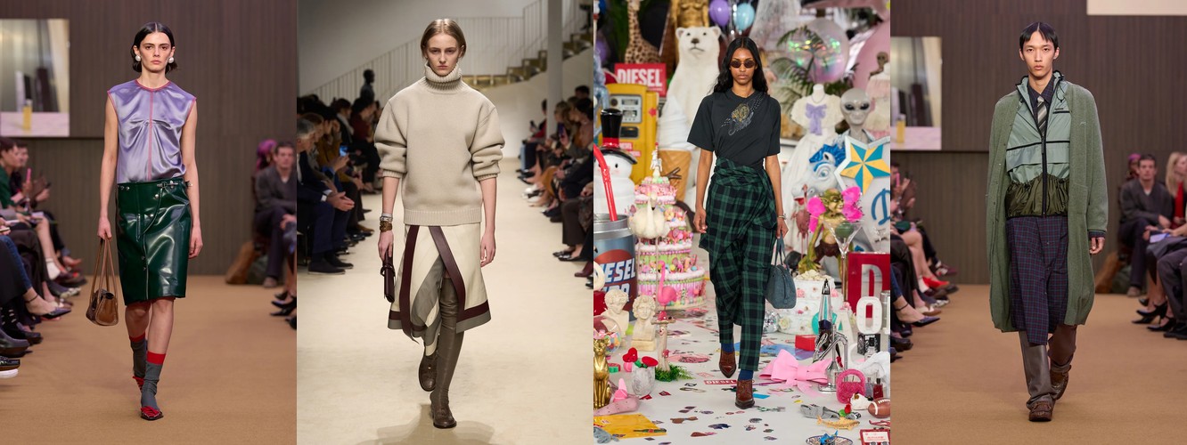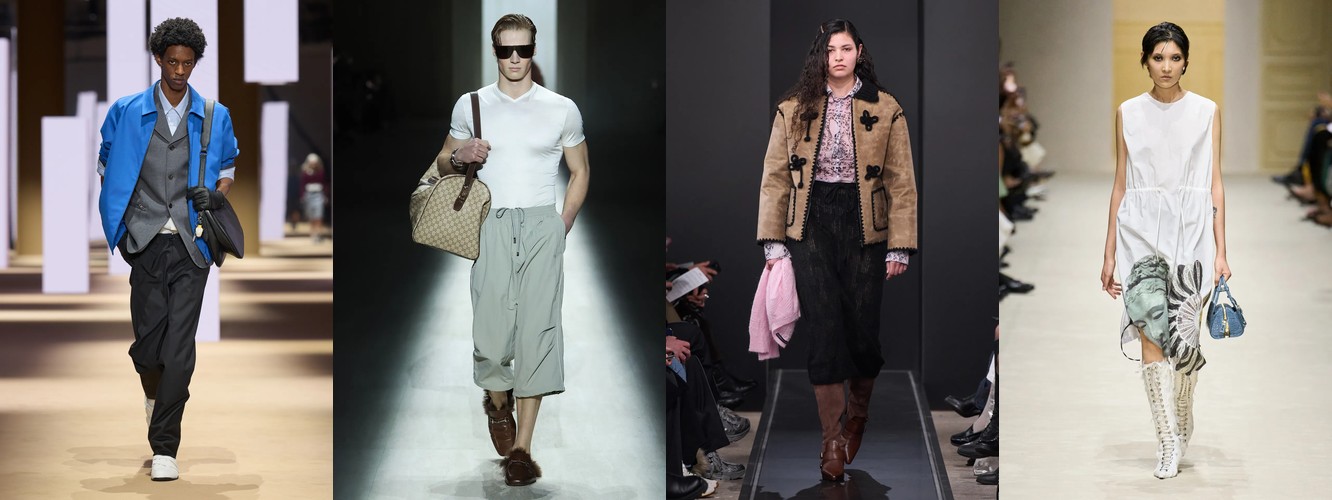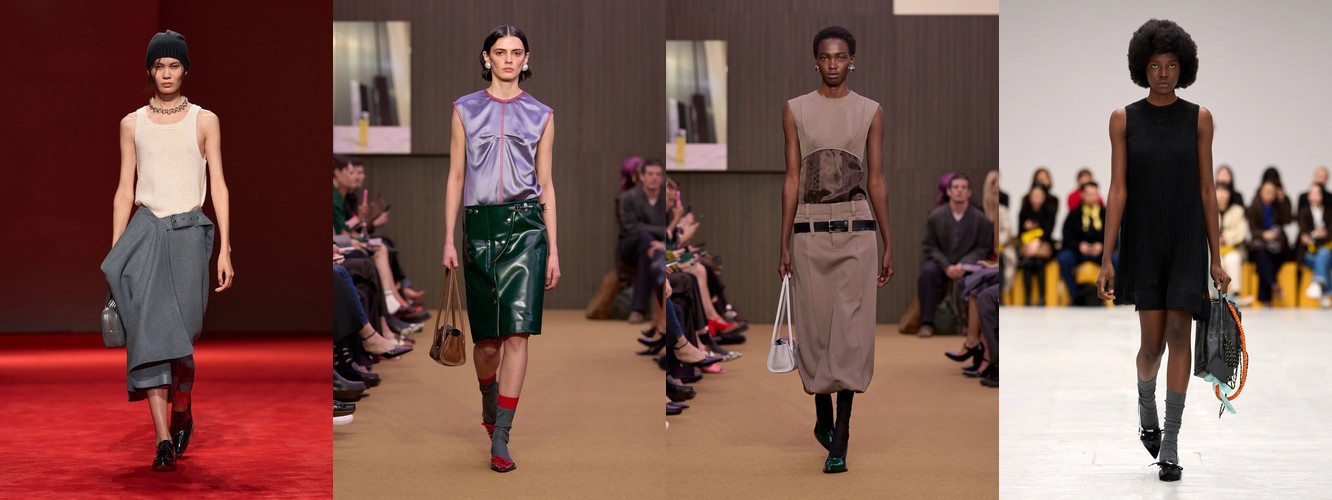Это не сезонная коррекция; это — отказ от визуального шума как коммуникативной стратегии. Ещё в AW25-26 блеск и фактурное богатство служили инструментами привлечения внимания в перегруженном контентом поле. Сейчас подиум транслирует прямо противоположный посыл: тишина как роскошь, сдержанность как высказывание. Когда бренд убирает пайетки и добавляет костюмную тройку, он перенастраивает свою визуальную коммуникацию с «посмотри на меня» на «я не нуждаюсь в твоём одобрении».