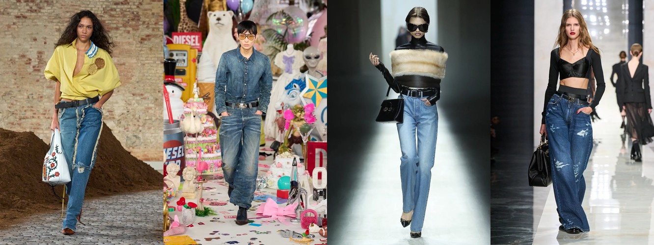 Паттерн кристально ясен: мода отвергает «обработанный» деним — тот, на котором видны следы намеренного дизайнерского вмешательства (рваность, ламинирование, обесцвечивание, контрастные швы) — и принимает деним в его «нулевом» состоянии: тёмный, плотный, необработанный. Это семантика аутентичности, честности материала, «workwear heritage» — ценности, которые точно рифмуются с общим трендом на деиерархизацию гламура.
