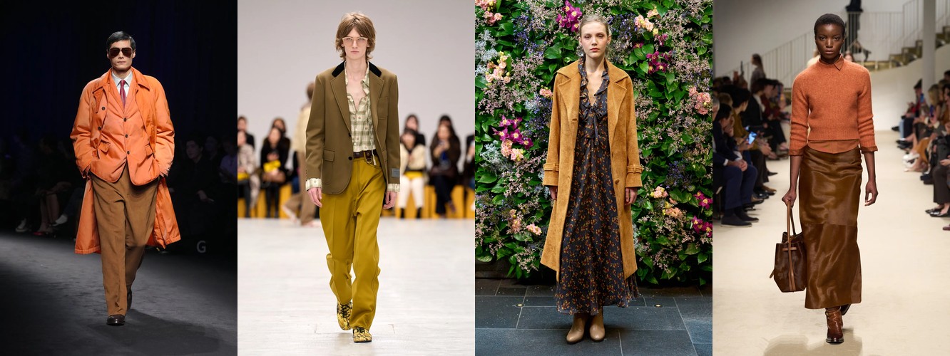 Коричневый демонстрирует неоднородную динамику: «танин» (+49,85%), «глина» (+142,11%) растут, тогда как «ряса монаха» (+4,09%) и «каучуковый» (−3,24%) стабильны или стагнируют. Растущие оттенки — землистые, пигментированные, «сырые». Это семантика природного материала, необработанной поверхности — визуальный код, перекликающийся с ростом необработанного денима (+58,20%) и льна (+33,33%).