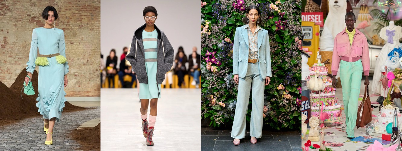 Отступают: бордовый «красный георгин» (−42,42%), «потертый деним» как цвет (−40,65%). Мода охлаждается в буквальном хроматическом смысле — теплота уступает нейтральности, насыщенность уступает глубине.