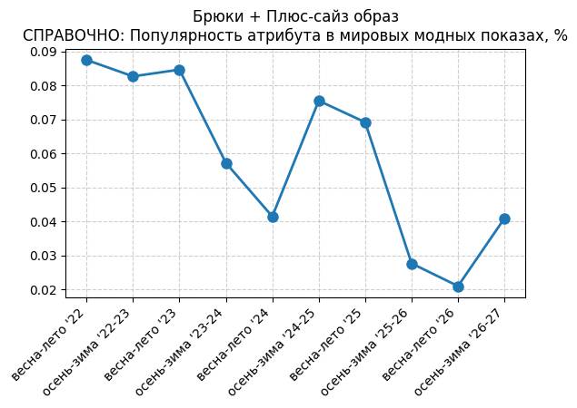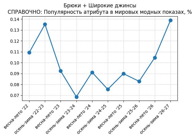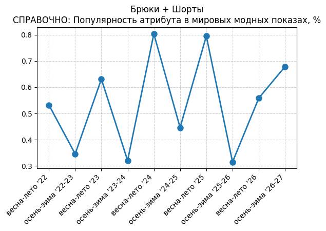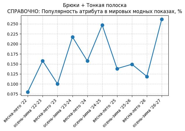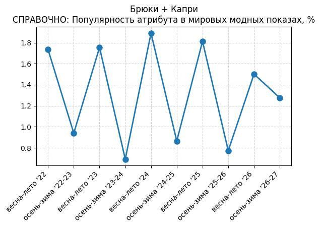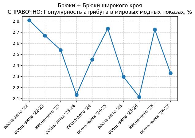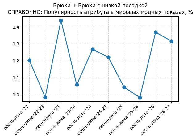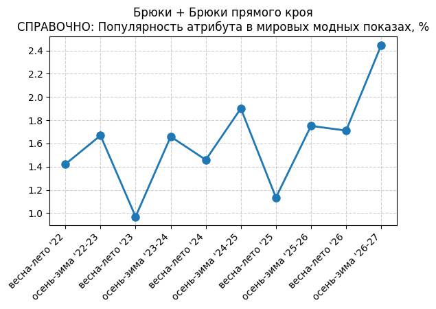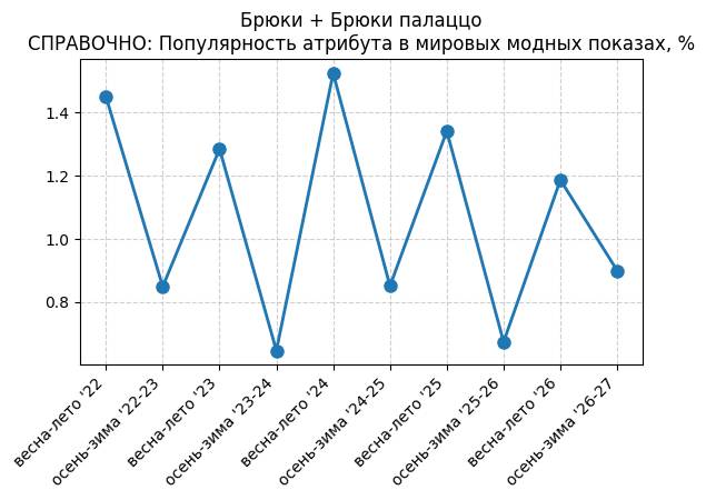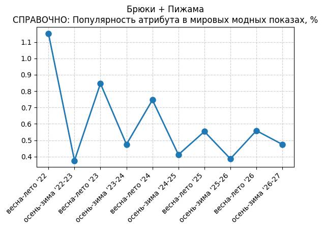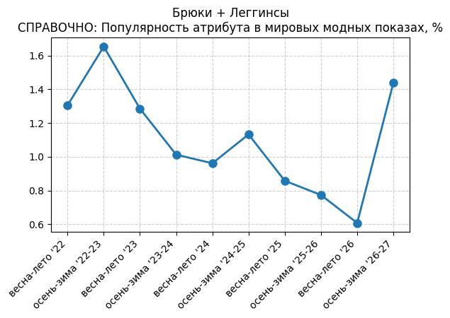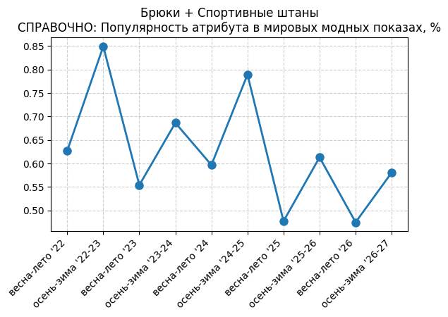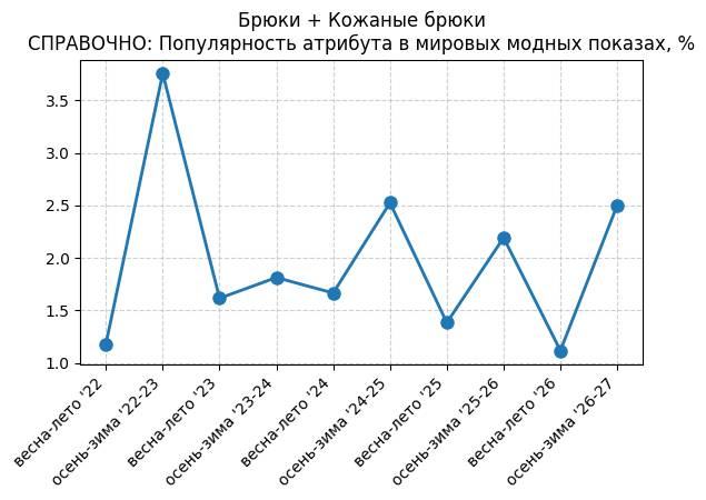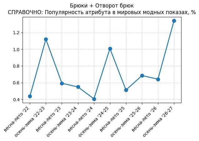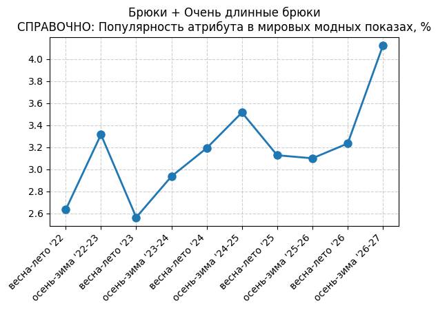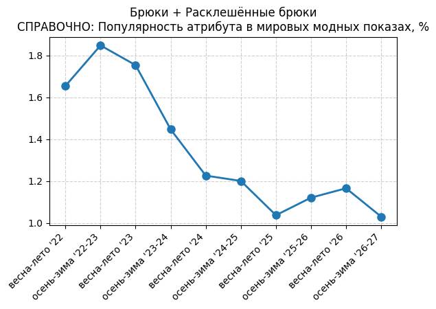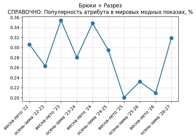 Брюки + Разрез - СПРАВОЧНО: Популярность атрибута в мировых модных показах, %