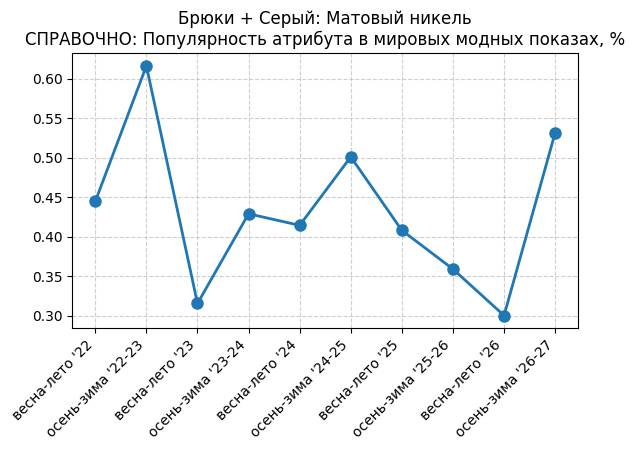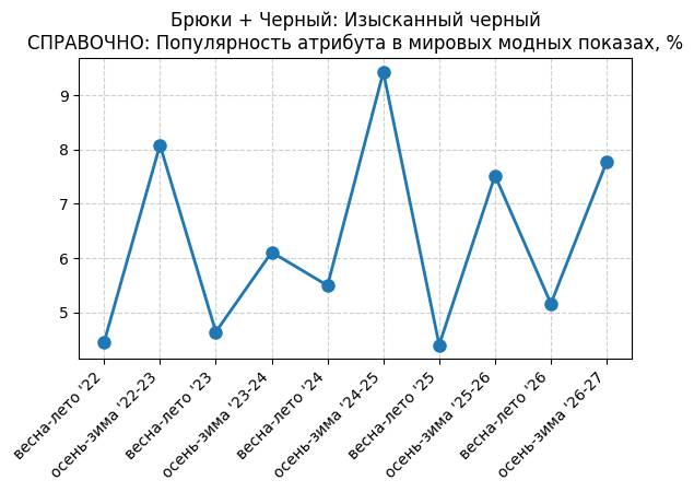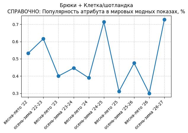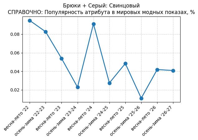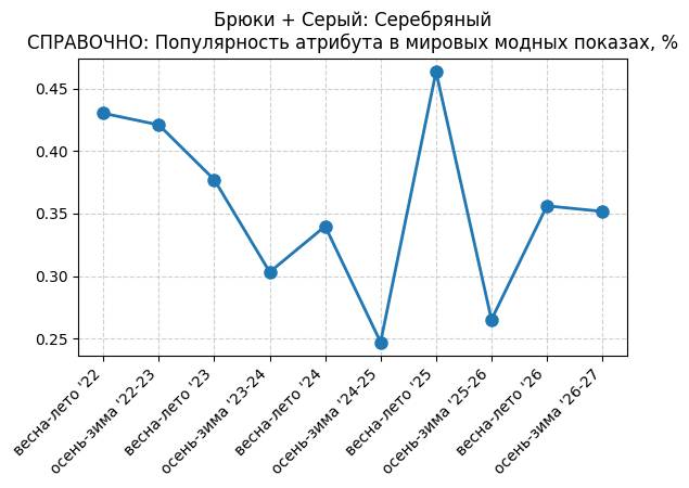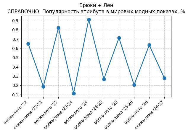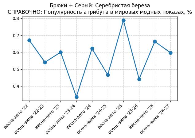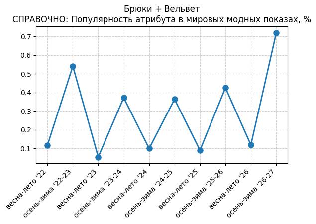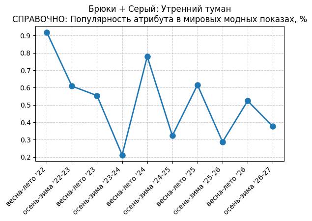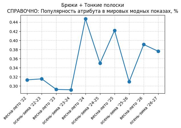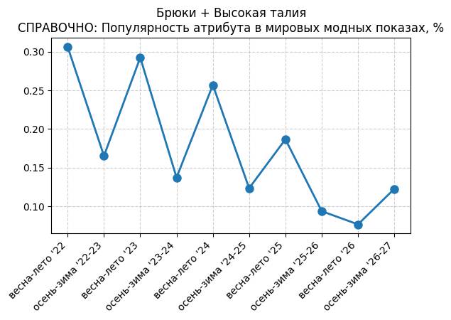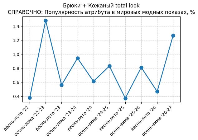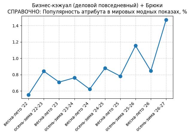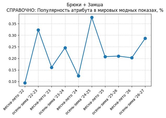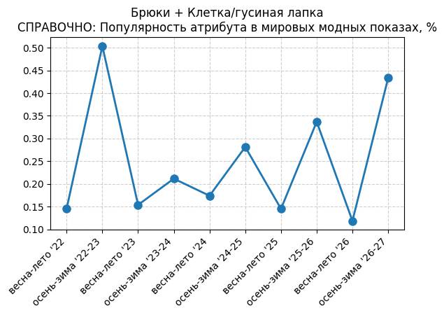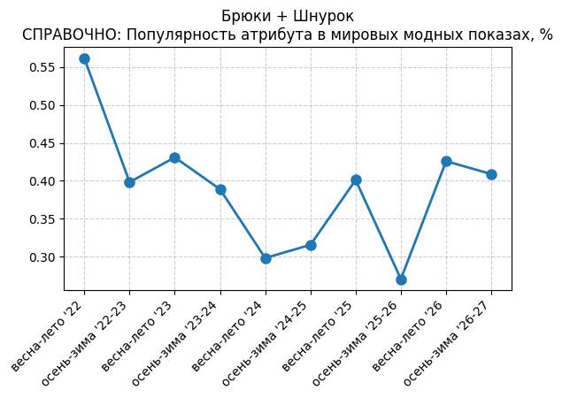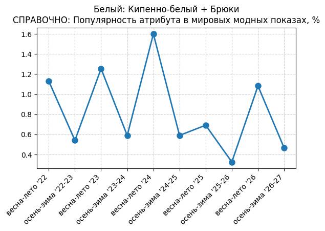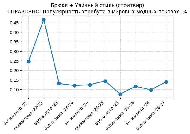 Брюки + Разрез - СПРАВОЧНО: Популярность атрибута в мировых модных показах, %