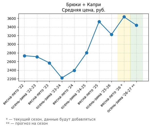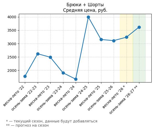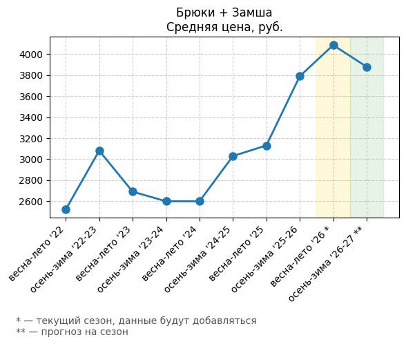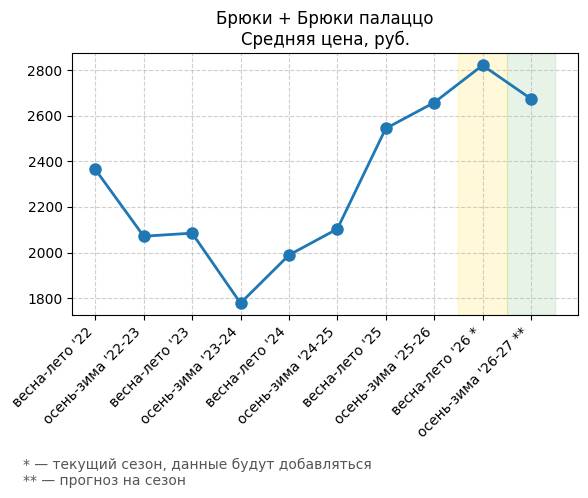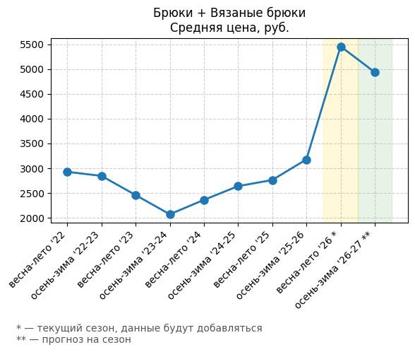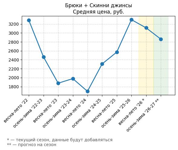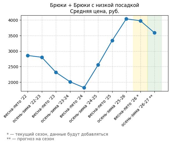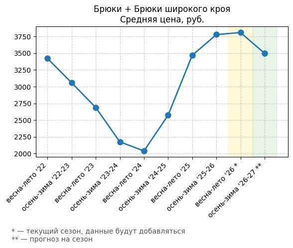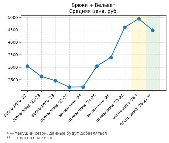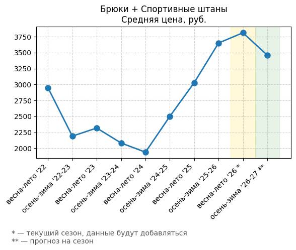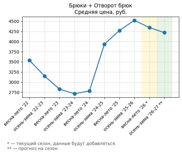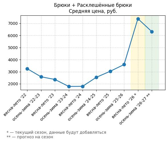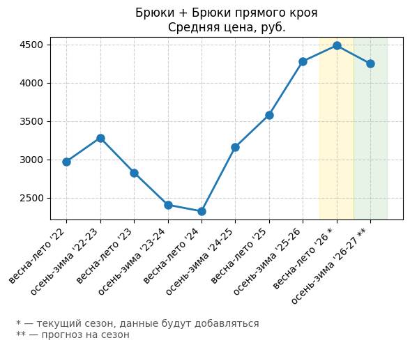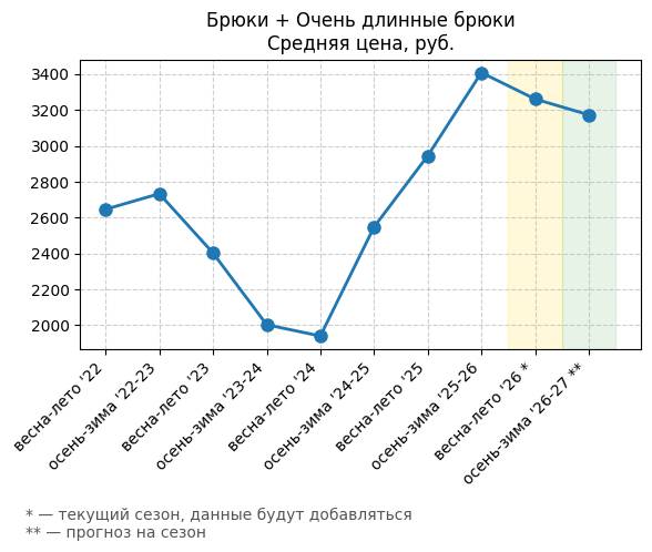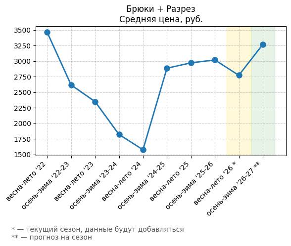 Брюки + Разрез - Средняя цена, руб.
