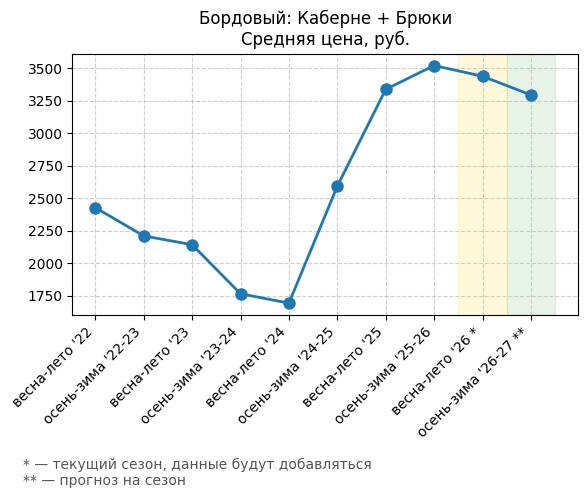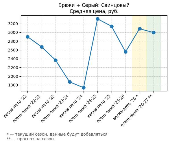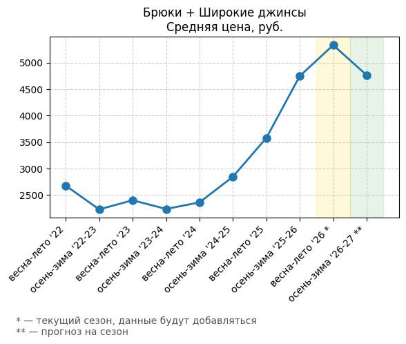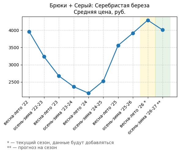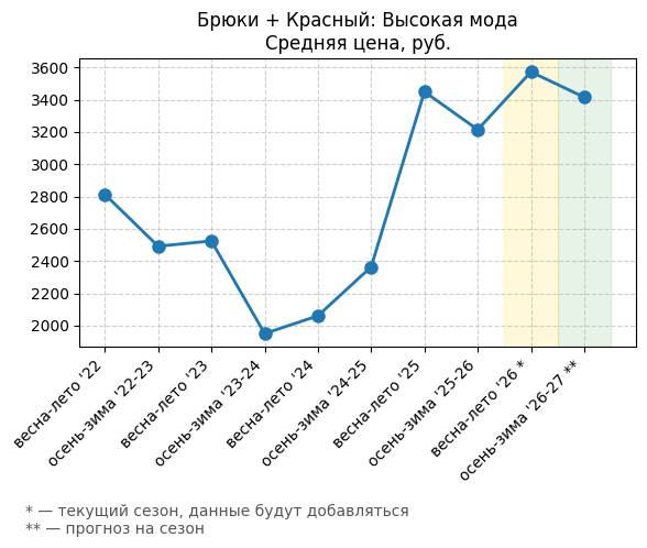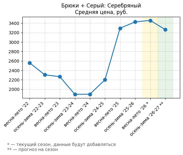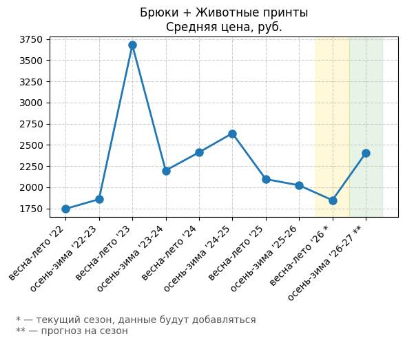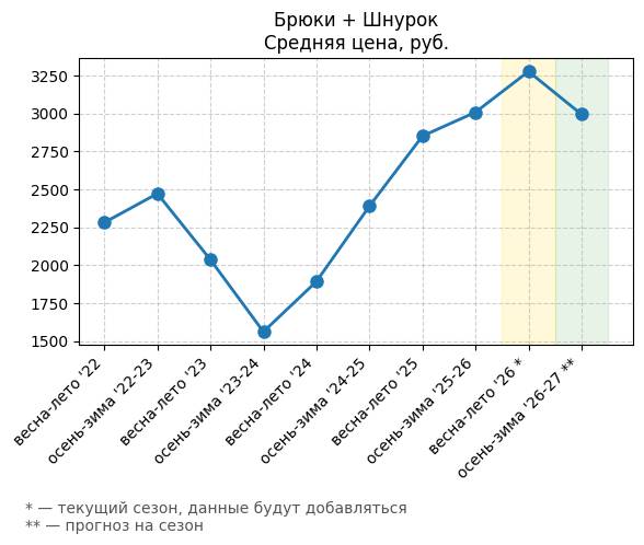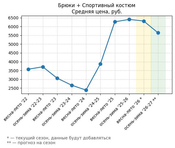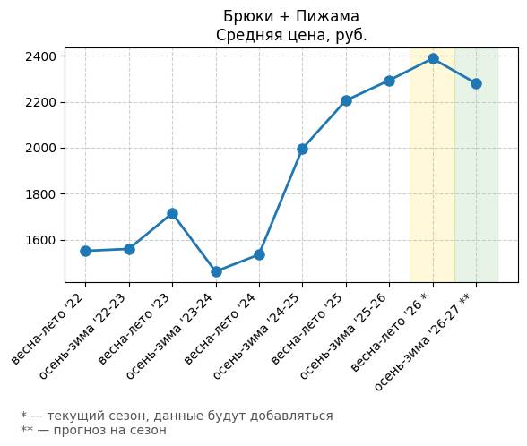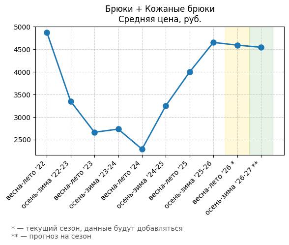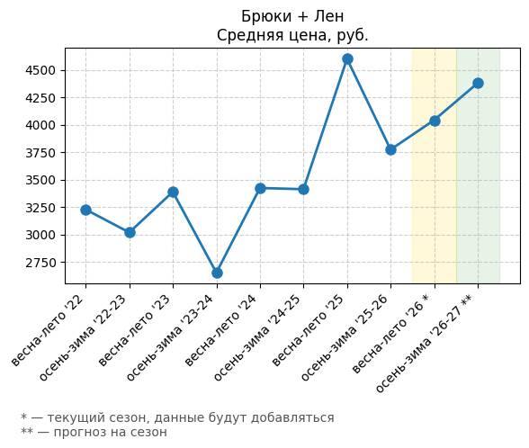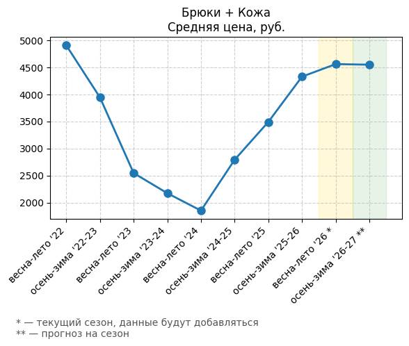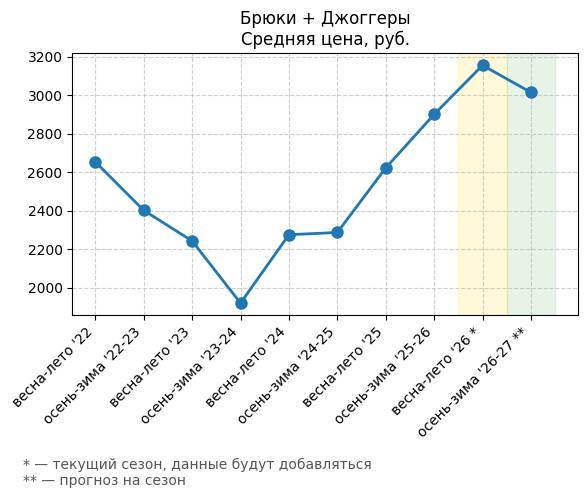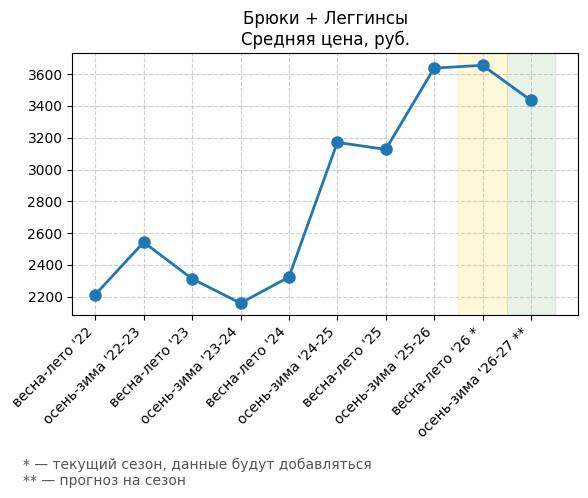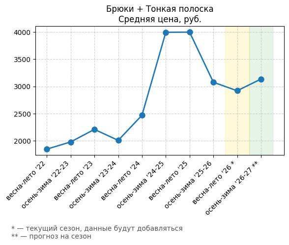 Брюки + Разрез - Средняя цена, руб.