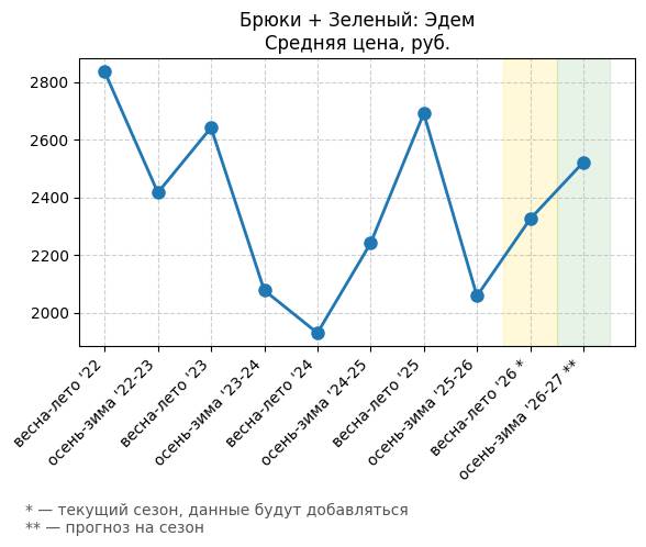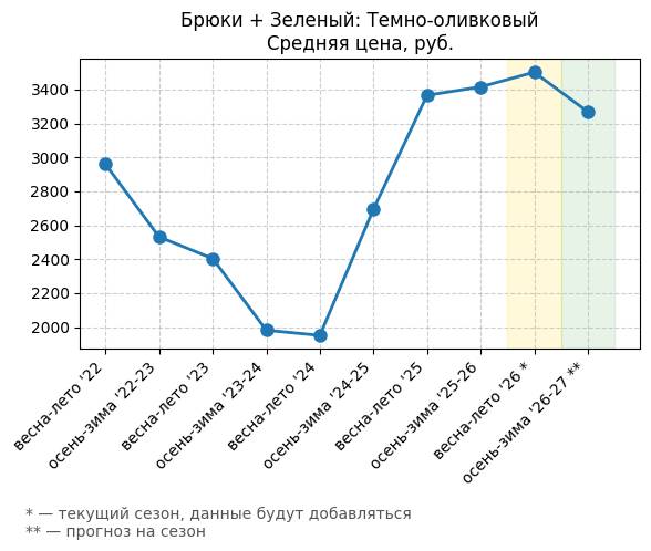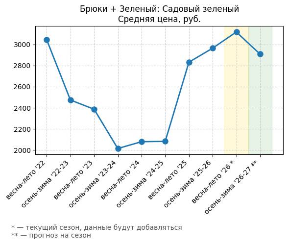 Брюки + Зеленый: Садовый зеленый - Средняя цена, руб.