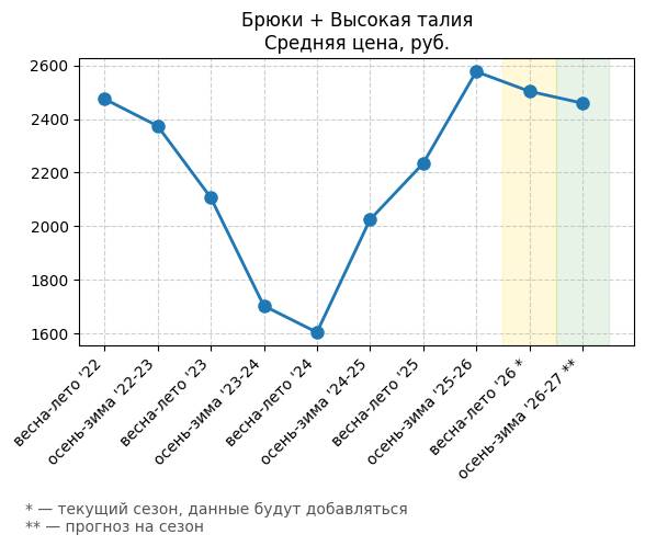 | Брюки + Высокая талия | 44.57 | 43.52 | -1.05 | -2.36 |