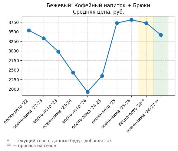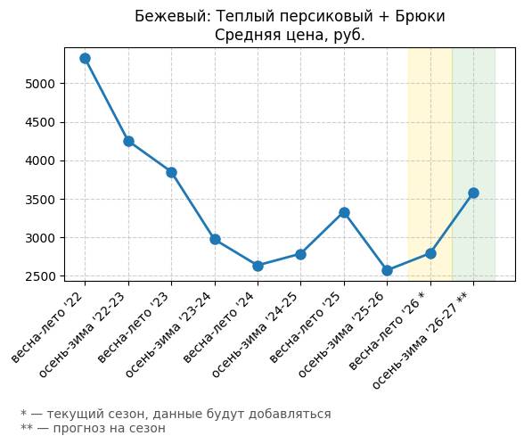 Бежевый: Теплый персиковый + Брюки - Средняя цена, руб.