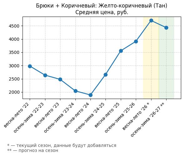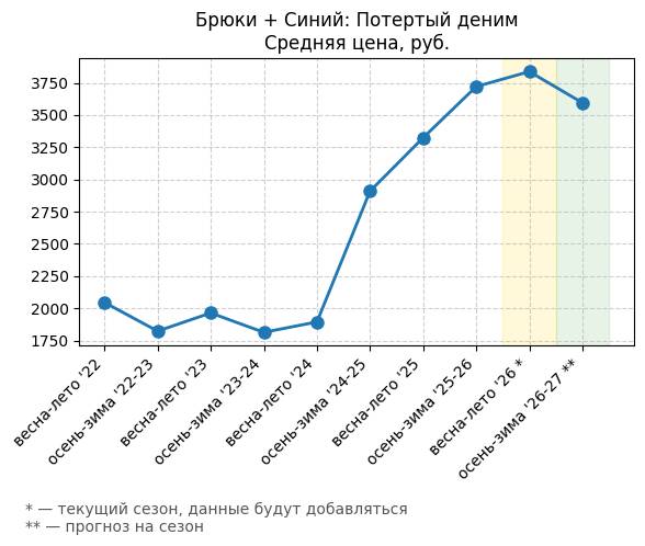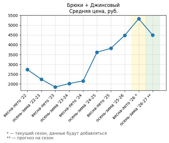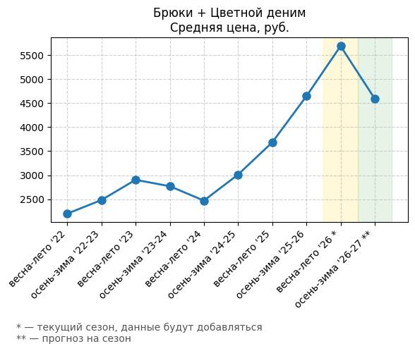Брюки + Цветной деним - Средняя цена, руб.