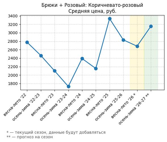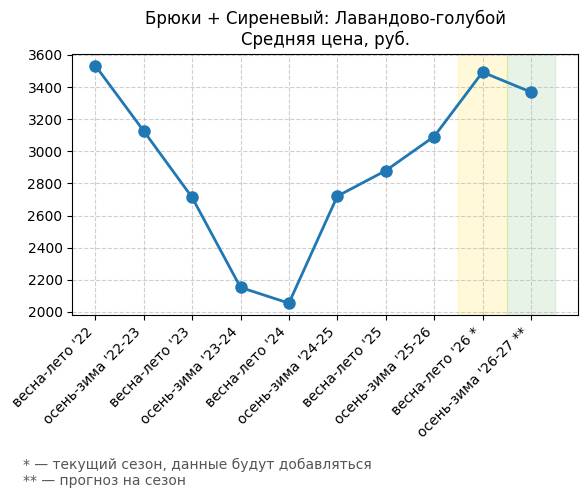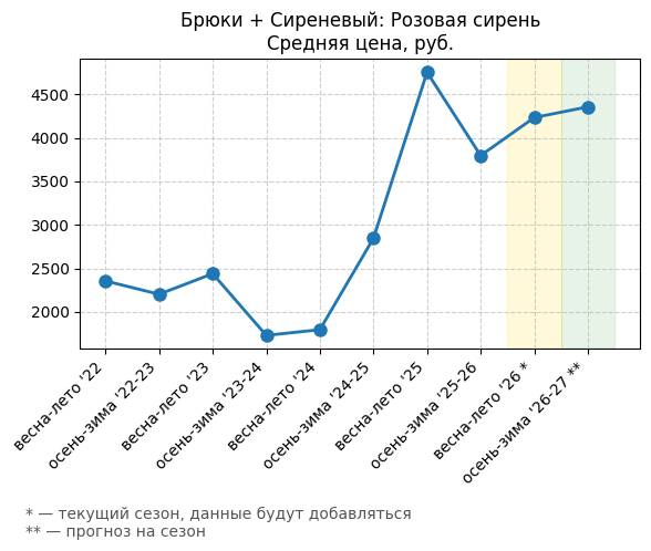 Брюки + Сиреневый: Розовая сирень - Средняя цена, руб.