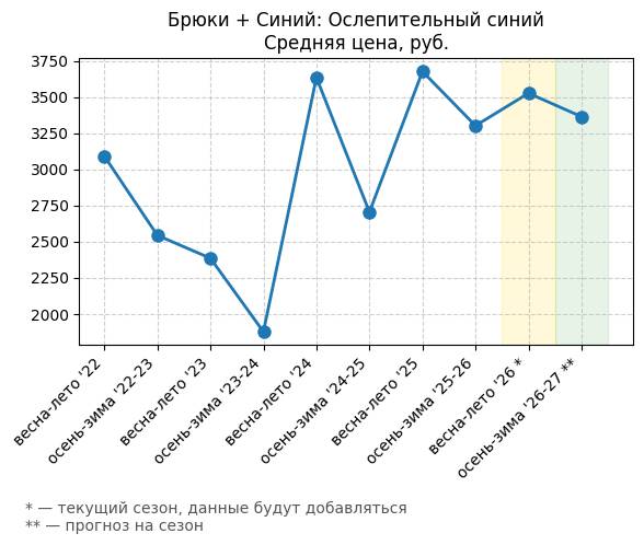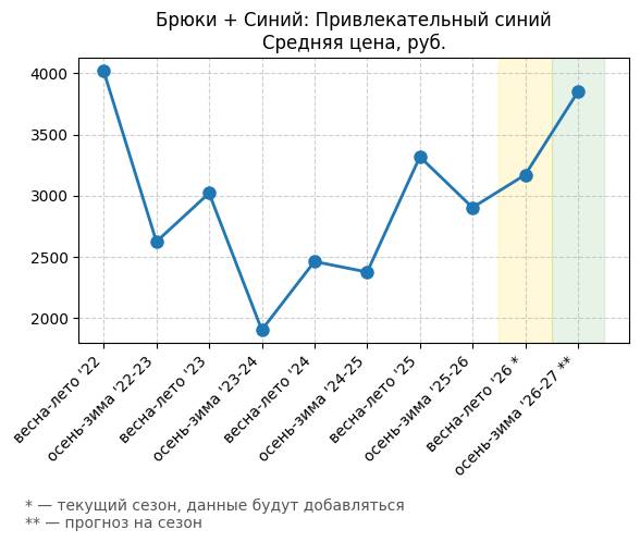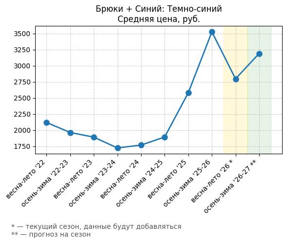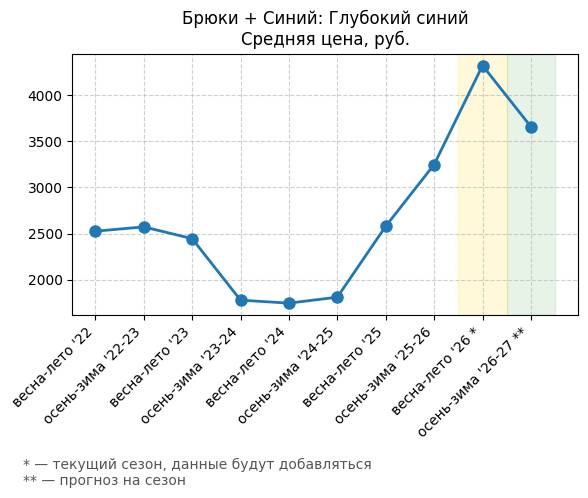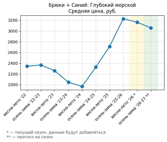 Брюки + Синий: Глубокий синий - Средняя цена, руб.