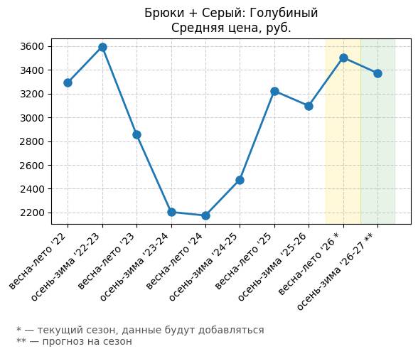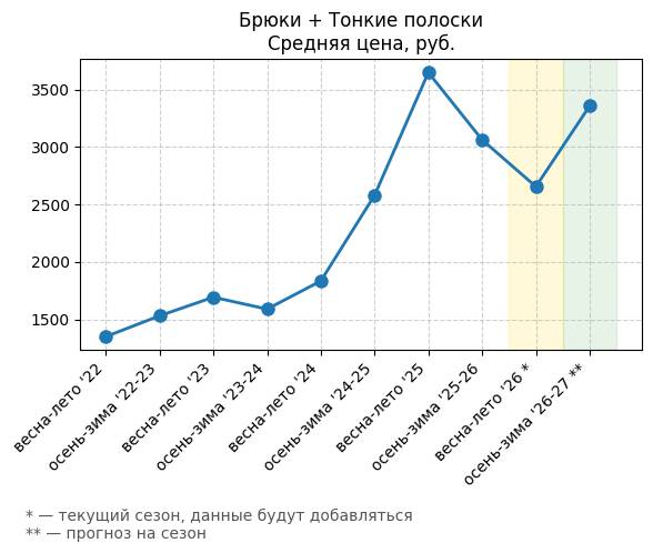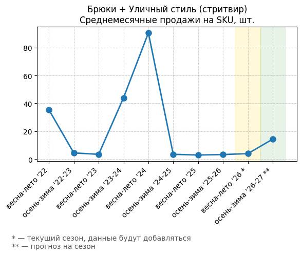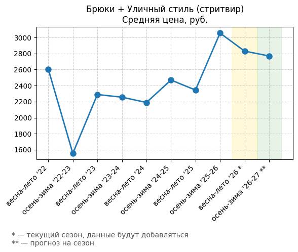 | Брюки + Уличный стиль (стритвир) | 0.91 | 8.1 | 7.19 | 792.25 |