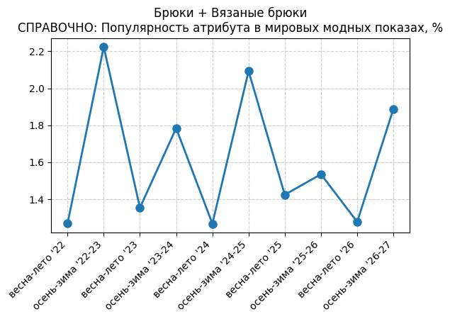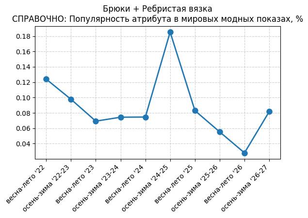 Брюки + Ребристая вязка - СПРАВОЧНО: Популярность атрибута в мировых модных показах, %