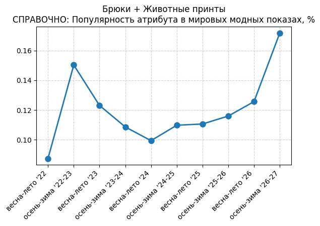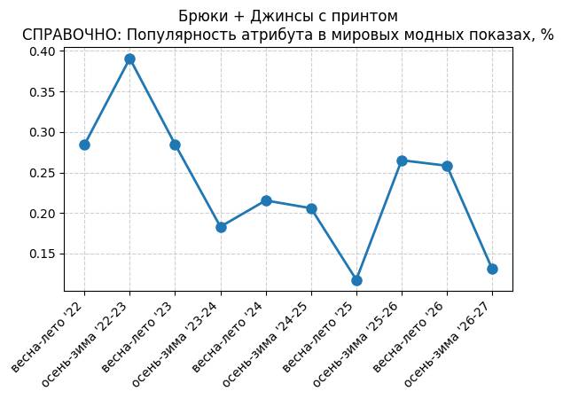 Брюки + Джинсы с принтом - СПРАВОЧНО: Популярность атрибута в мировых модных показах, %