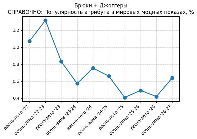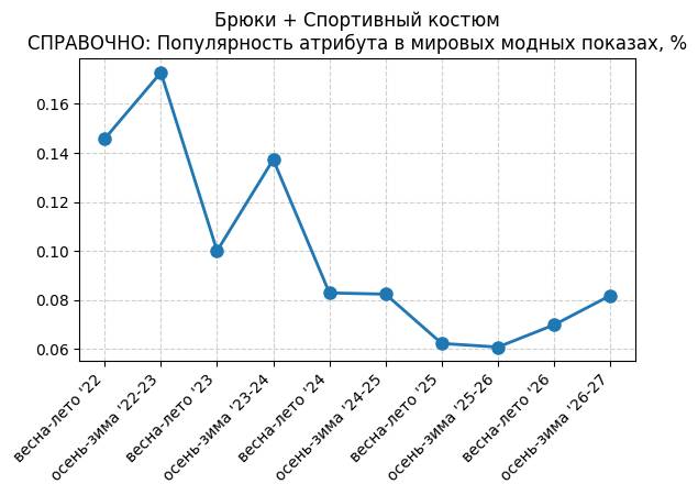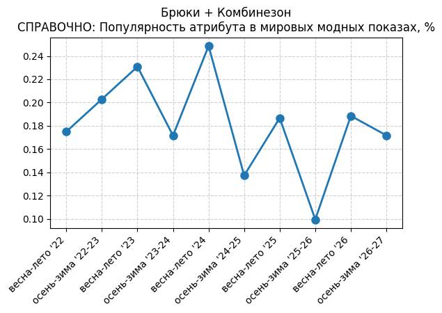 Брюки + Комбинезон - СПРАВОЧНО: Популярность атрибута в мировых модных показах, %