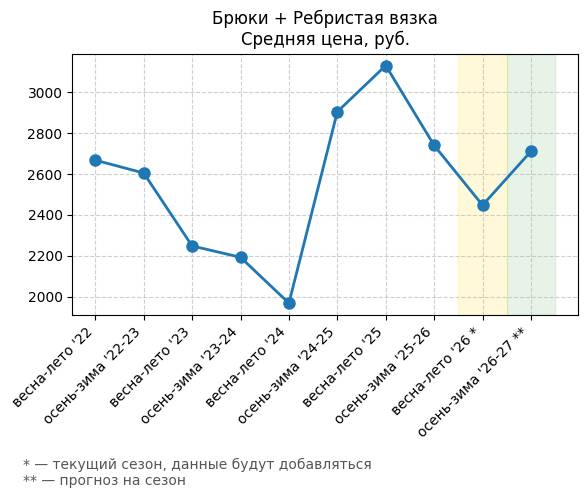 Брюки + Ребристая вязка - Средняя цена, руб.