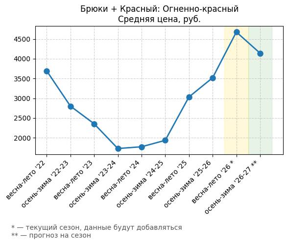 Брюки + Красный: Огненно-красный - Средняя цена, руб.