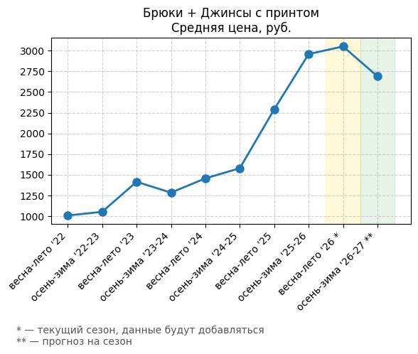 Брюки + Джинсы с принтом - Средняя цена, руб.