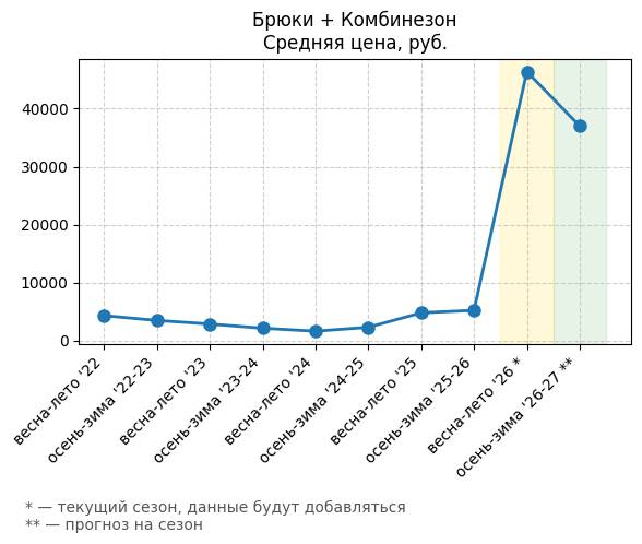 Брюки + Комбинезон - Средняя цена, руб.
