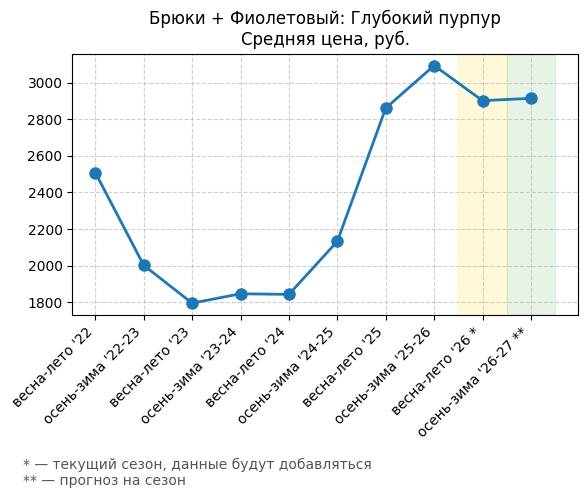 Брюки + Фиолетовый: Глубокий пурпур - Средняя цена, руб.