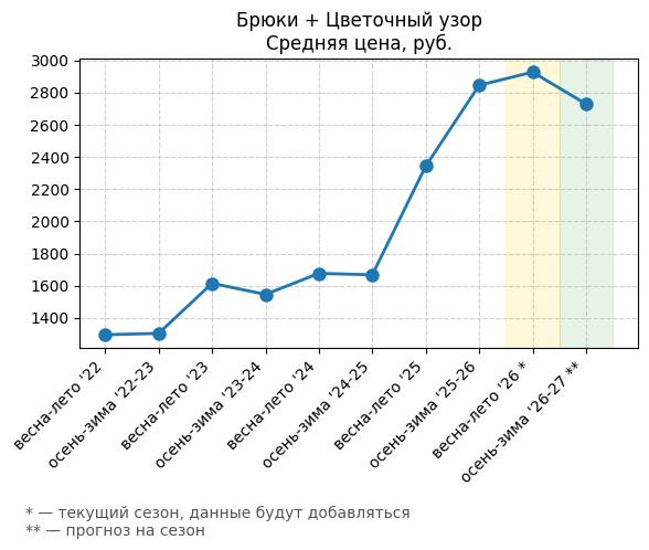 Брюки + Цветочный узор - Средняя цена, руб.
