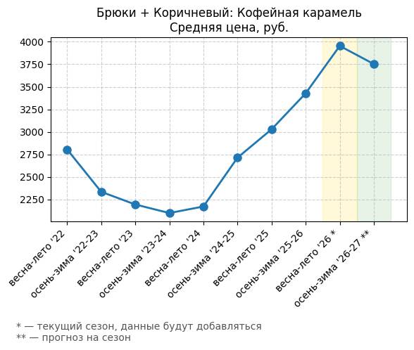 Брюки + Коричневый: Кофейная карамель - Средняя цена, руб.