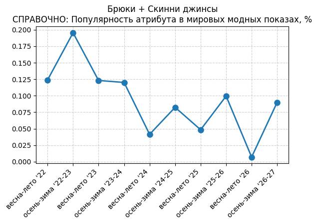 Брюки + Скинни джинсы - СПРАВОЧНО: Популярность атрибута в мировых модных показах, %