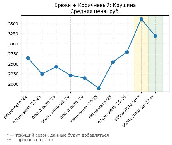 Брюки + Коричневый: Крушина - Средняя цена, руб.