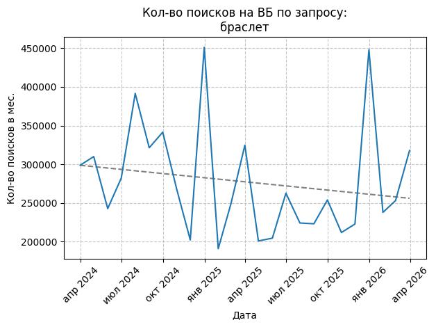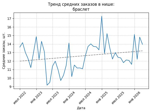 Общий вывод: Ниша «браслеты» стабильна. Хотя взрывного роста спроса нет, топовые товары зарабатывают в 10 раз больше средних показателей. У вас есть большой потенциал для роста через SEO.
