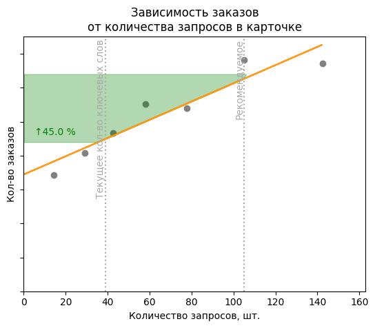 Сейчас в карточке 39 ключевых запросов категории. Оптимизация приведет к показам по новым ключевым запросам и, возможно, росту выручки до 45%.