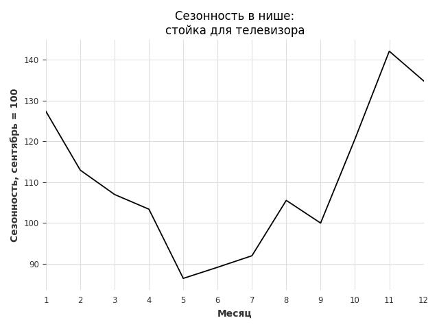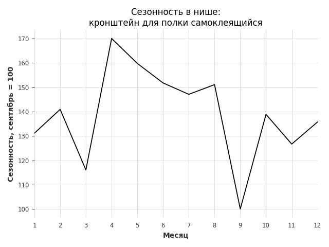 Сезонность в нише слабая. Пик сезонных продаж в нише - апрель. В ближайшие месяцы можно ожидать сезонного роста продаж до 38%.