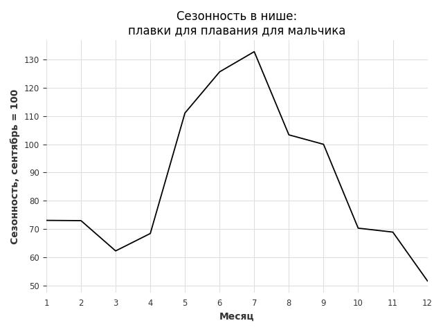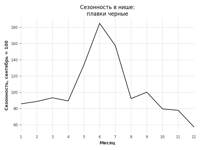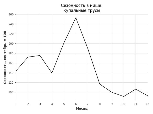 Сезонность в нише средняя. Пик сезонных продаж в нише - июнь. В ближайшие месяцы сезонность не будет заметно влиять на продажи.