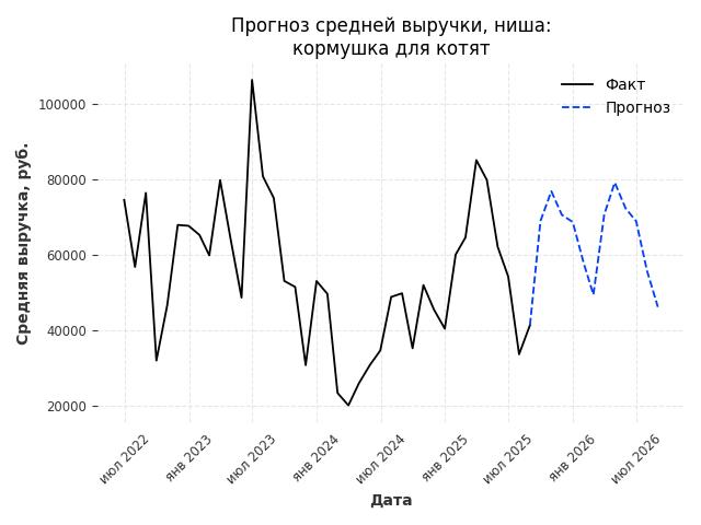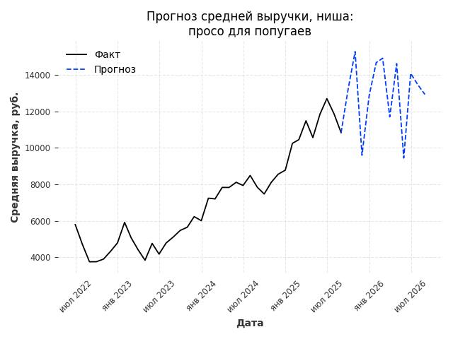 - Прогноз средней выручки в нише на следующие 12 месяцев: 13052 руб./месяц