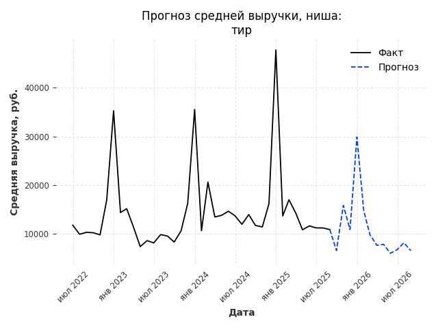 - Прогноз средней выручки в нише на следующие 12 месяцев: 28679 руб./месяц