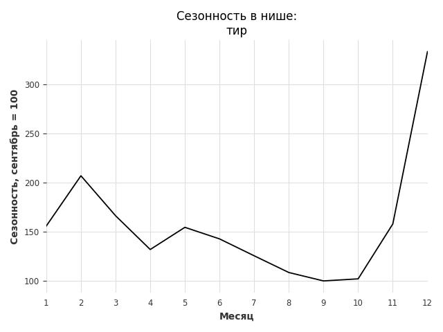 Сезонность в нише средняя. Пик сезонных продаж в нише - декабрь. В ближайшие месяцы можно ожидать сезонного роста продаж до 233%.