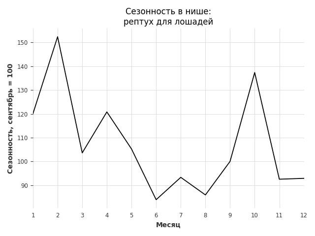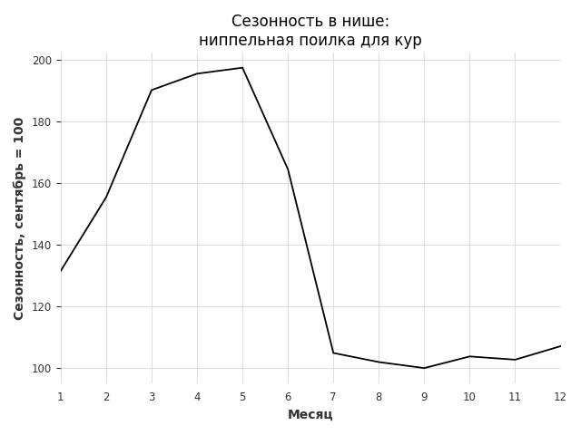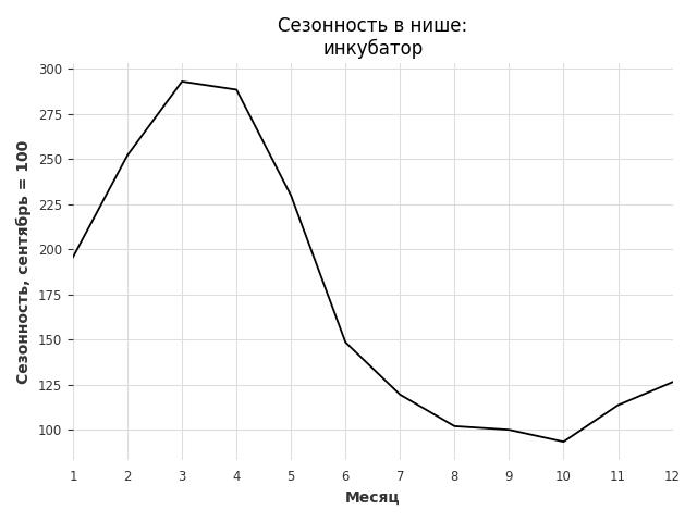 Сезонность в нише средняя. Пик сезонных продаж в нише - март. В ближайшие месяцы можно ожидать сезонного роста продаж до 26%.