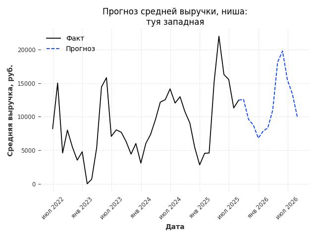 - Фактическая средняя выручка в нише по заказам за предыдущие 12 месяцев: 13196 руб./месяц