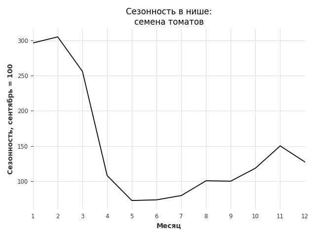 Сезонность в нише сильная. Пик сезонных продаж в нише - февраль. В ближайшие месяцы можно ожидать сезонного роста продаж до 50%.
