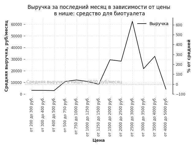 Выручка в нише в зависимости от цены