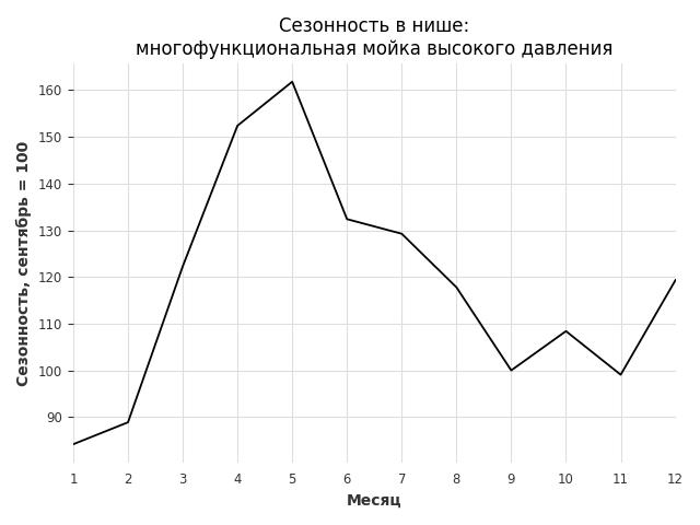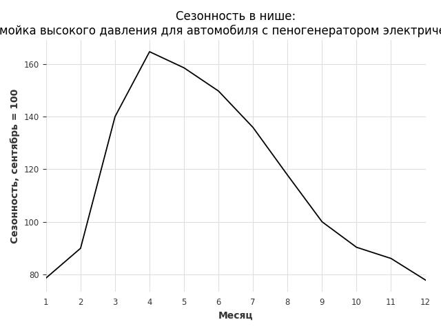 Сезонность в нише средняя. Пик сезонных продаж в нише - апрель. В ближайшие месяцы можно ожидать сезонного спада продаж до 23%.