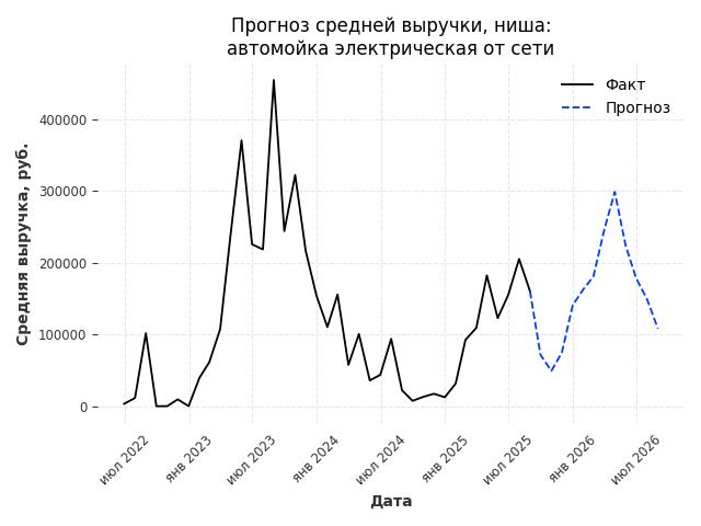- Прогноз средней выручки в нише на следующие 12 месяцев: 155327 руб./месяц