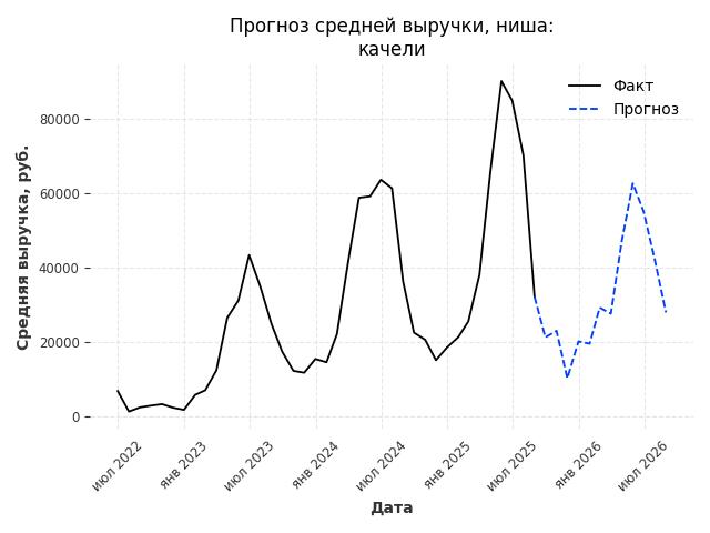 - Прогноз средней выручки в нише на следующие 12 месяцев: 9450 руб./месяц