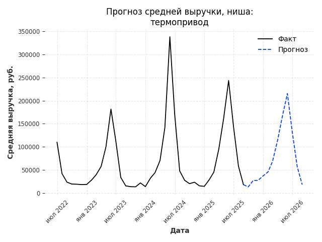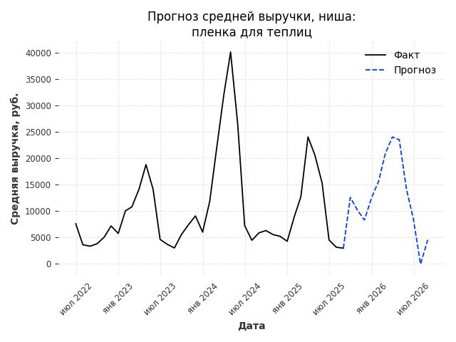 - Прогноз средней выручки на ближайшие 12 месяцев: 12909 руб./месяц