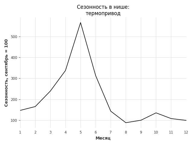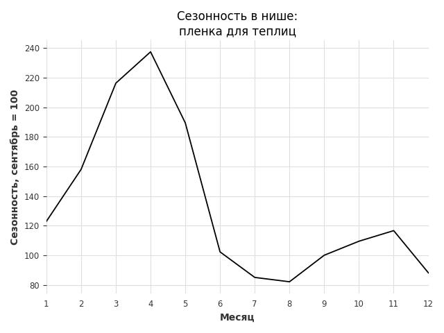 Сезонность в нише сильная. Пик сезонных продаж в нише - май. В ближайшие месяцы можно ожидать сезонного роста продаж до 35%.