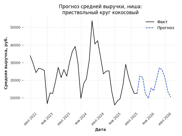 - Прогноз средней выручки в нише на следующие 12 месяцев: 77055 руб./месяц