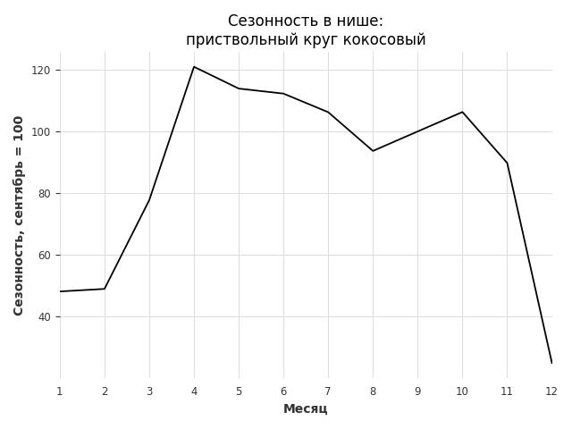 Сезонность в нише средняя. Пик сезонных продаж в нише - апрель. В ближайшие месяцы сезонность не будет заметно влиять на продажи.