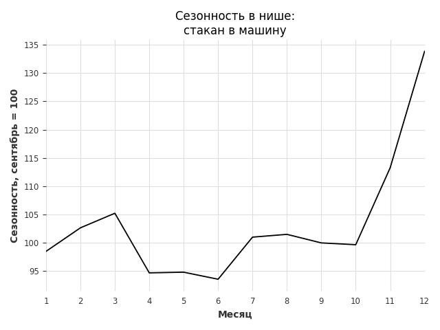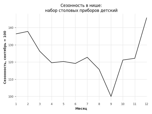 Сезонность в нише слабая. Пик сезонных продаж в нише - декабрь. В ближайшие месяцы можно ожидать сезонного роста продаж до 33%.