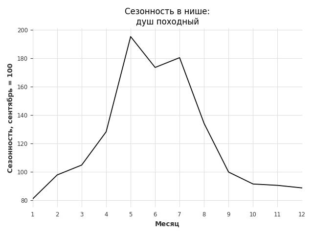 Сезонность в нише средняя. Пик сезонных продаж в нише - май. В ближайшие месяцы сезонность не будет заметно влиять на продажи.